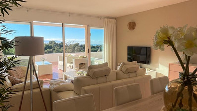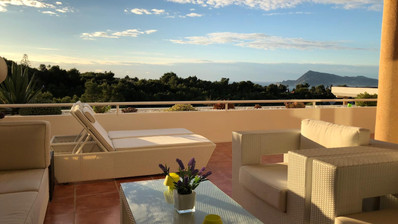 The spacious living terrace (55m2) gives views over the Mediterranean Sea, cliffs and the bay of Altea and Albir.